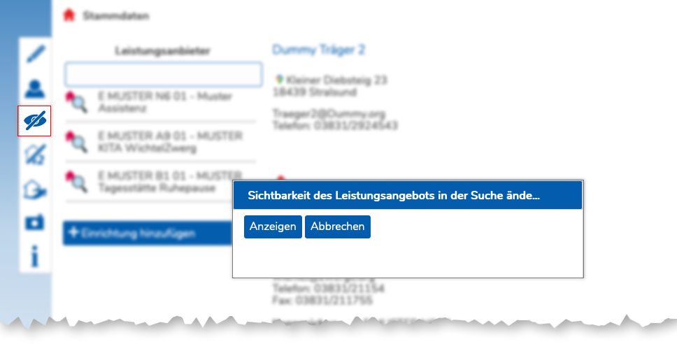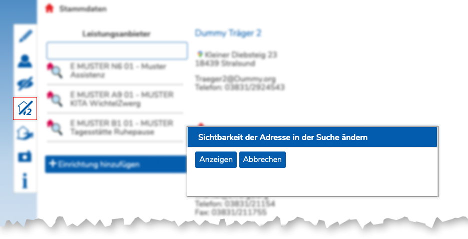 Auch kann nur die Anschrift eines Leistungsangebots ausgeblendet werden, z.B. Leistungen, bei denen Externe nicht den Ort der Leistung zum Schutzes der Leistungsempfänger erfahren sollen.